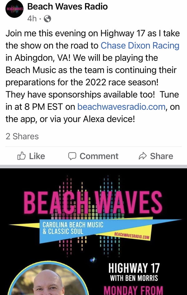 Listen to us tonight on Beach Waves Radio as we discuss this upcoming year on the Cars Tour.